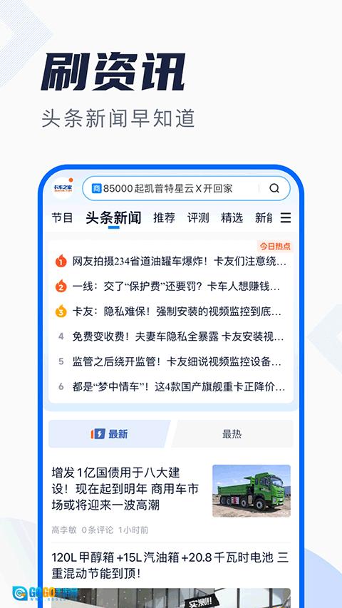 1. 聚合商用车大量原创内容,包含新闻资讯、行情导购、养车常识以及政策法规,让用户能随时浏览并知悉行业动态。