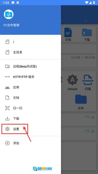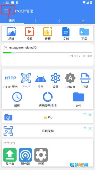 1. 开启文件管理类的应用程序,点击位于左上角的菜单按钮,此时侧边栏会弹出。
