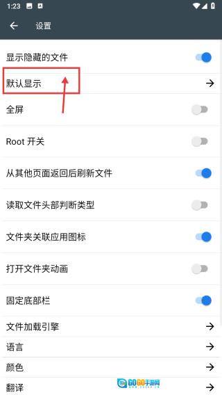 3、进入设置页面后,点击默认显示选项,随即弹出显示设置弹窗。