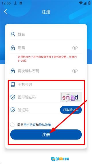 5、在输入手机号码以及图形短信验证码之后,点击“注册”按钮,即可完成账号注册的相关操作。