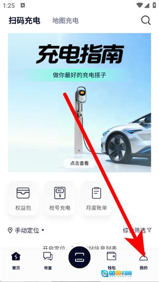 1. 开启蔚蓝快充,轻点底部导航栏中的“我的”,从而进入个人中心页面。