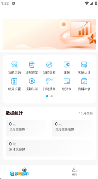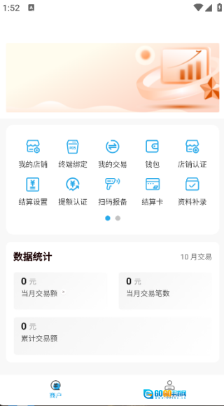 2. 在主页,便能看到我的店铺、终端绑定、我的交易等功能。