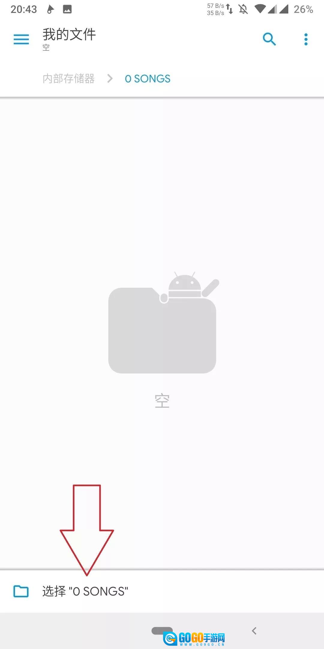 8、点击下方的“选择‘0 Songs’”,这表示歌曲文件将会被复制到该文件夹里。