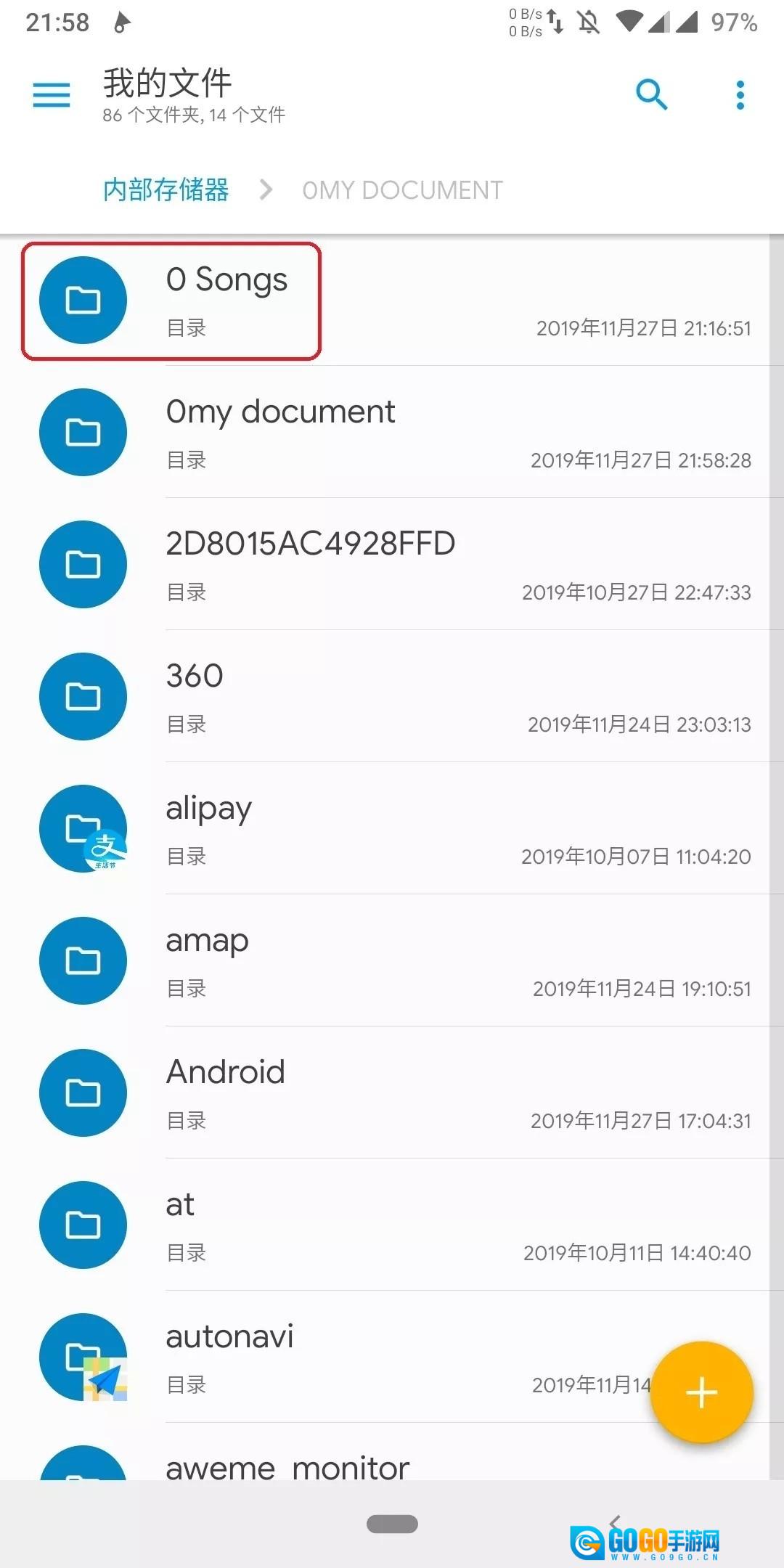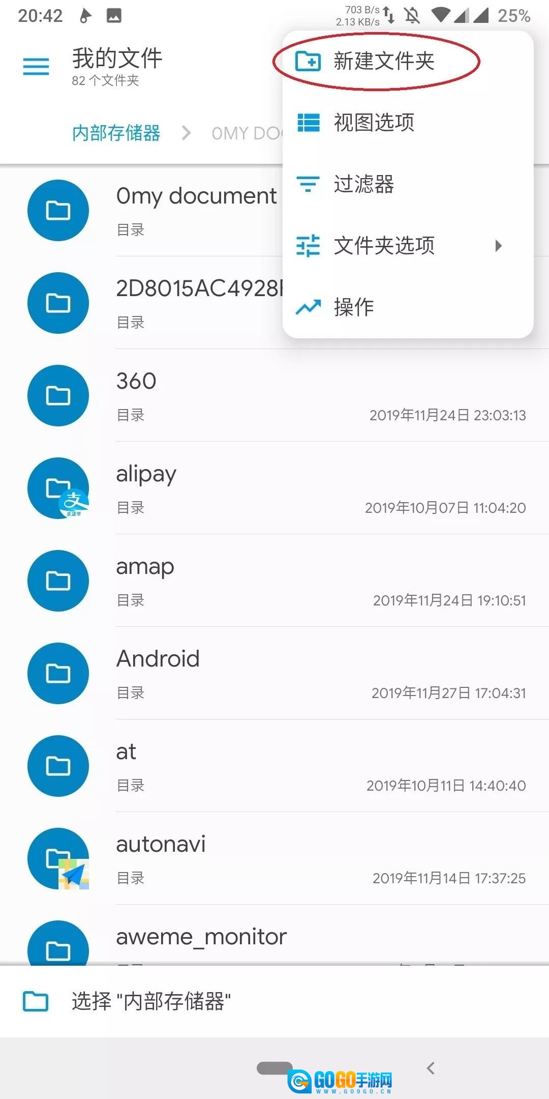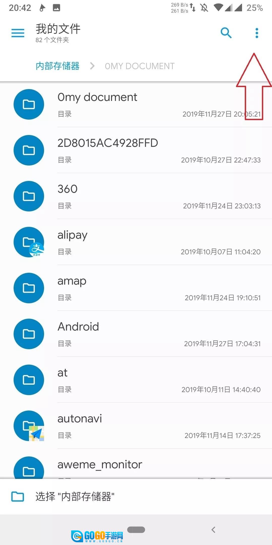 4、此时便进入了文件管理器,呈现在你眼前的是手机的存储空间,其中包含众多文件夹。倘若你清楚手机里的歌曲保存在哪个文件夹,直接进入该文件夹,接着跳转至第9步。要是不清楚的话,就新建一个文件夹。新建文件夹的操作是,点击右上角的三个点。