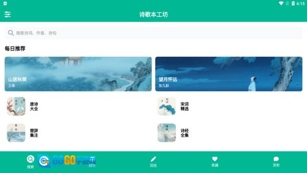 诗歌本工坊软件是一款一站式古典诗词阅读学习软件,涵盖国内唐诗宋词等古文经典。它提供多种分类浏览方式与多维度赏析内容,助力你感受古诗词之美。你能利用碎片化时间在此学习,软件每日都有推荐,让你在空闲时刻也能接触古人的文字结晶,体验感极佳。在这里,你可尽情欣赏心仪的唐诗宋词,各类精选内容免费查看,更有助于你深入学习。