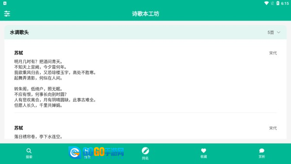 3、具备同名整合功能,借助此功能,能够浏览同名的各类诗词,领略不同作者笔下的多样内容。