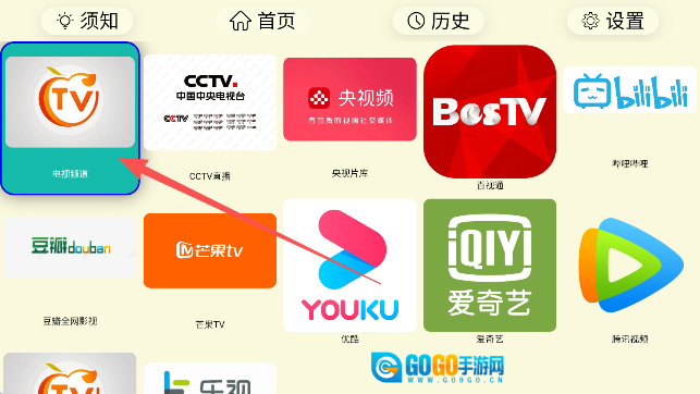 1、打开此处后,大家能够看到频道导航,其中包含电视直播、片库以及各大平台的播放器。