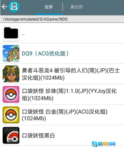 寻得已存储的NDS游戏ROM,轻点即可开启游戏。