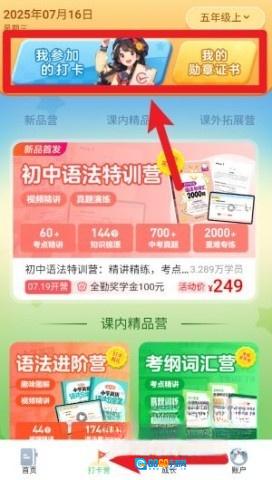 2. 在“打卡营”界面,可查看参与活动情况以及个人学习成就展示。