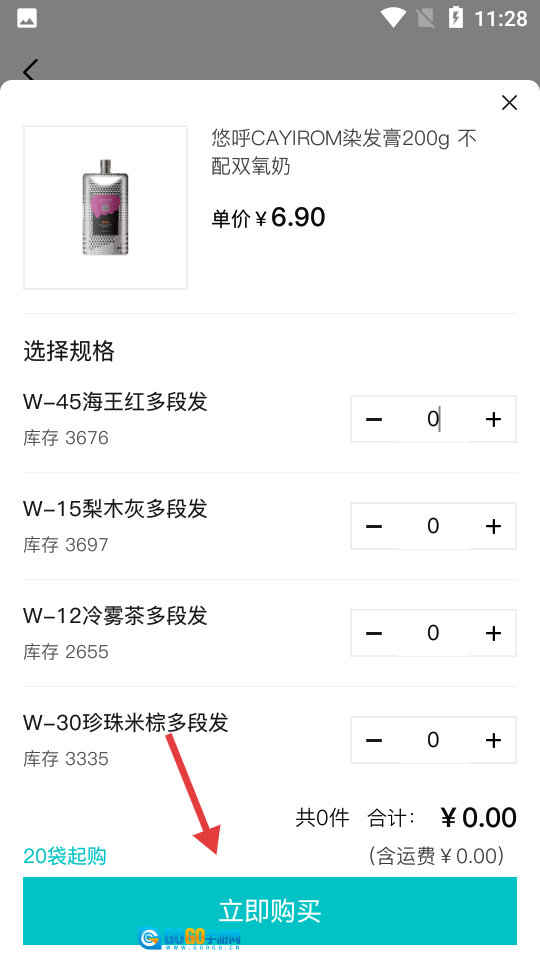 3、点击“立即购买”,随即弹出规格选择窗口。