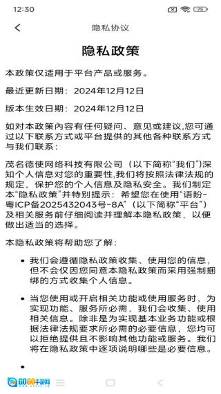 4、设有隐私政策专区,可在此查看平台使用的注意事项。