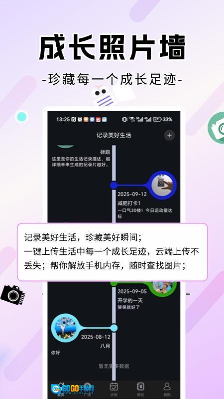 1. 集成长照片墙、财务记账等多种功能于一体,支持以文字、照片、视频形式记录生活,助力用户轻松回顾成长历程,留存美好记忆。