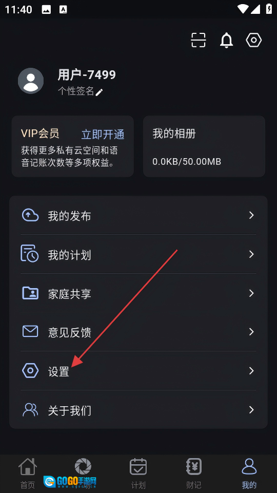 2. 在个人中心界面,点击【设置】选项,从而进入设置页面。