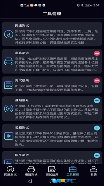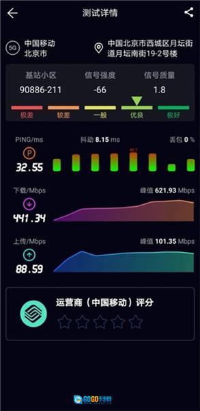 泰尔网测是一款由中国信息通信研究院推出的软件,专门用于手机网速测试。这款软件能助力用户快速测量网络速度,涵盖道路网速、视频测试、网页测速等,还能开启基站信号查询功能。所有测速结果都会保存至历史记录,方便您随时查看,确保使用过程流畅不卡顿。它为您提供全面的移动连接质量测量工具,炫酷的用户界面与交互式地图,将为您带来绝佳的用户体验。