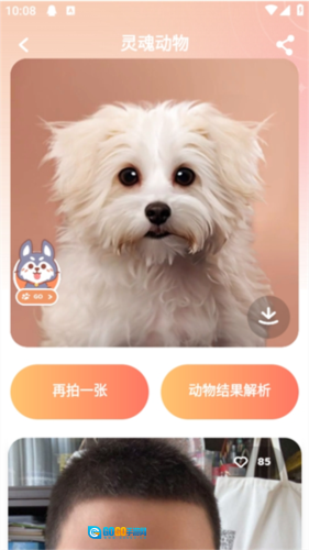 3、拍摄完成后,系统会自动识别并变换形象,让照片变成独具个人特色的小动物。若想保存,可点击右下角位置。