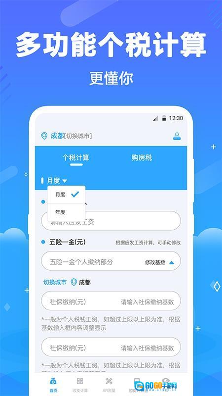 一键个人所得是一款专业的个税计算器应用软件,为用户配备多功能计算器,可实时计算个税,轻松达成多功能计算,并依据最新税法实时算出税率,从而轻松掌握公积金与社保基数,精准算出个人应缴纳的个税。不仅如此,该平台还支持购房计算,用户借助房贷计算器能轻松算出房产税,有效优化房产投资,便捷实现房贷计算。另外,一键个人所得客户端为用户提供多种实用测量工具,使用AR测量仪就能轻松实现智能测量,测量物体的距离与长度。有需要的用户,快来本站体验吧!