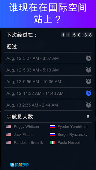 3、卫星过境定时器。计算距离国际空间站或任意选定卫星从你头顶上方飞过还需多久。