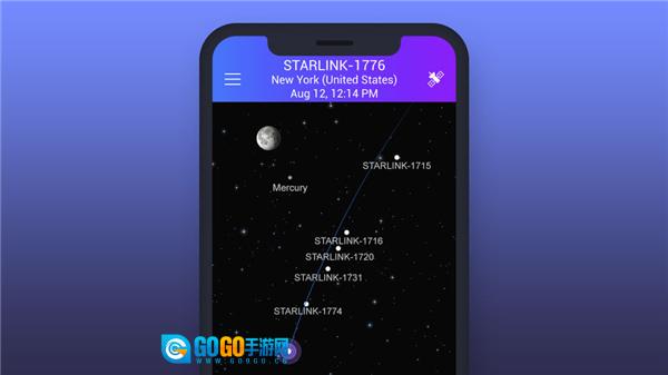 在对应的移动设备上,你能看到在你所处位置上方飞行的卫星正在发光。