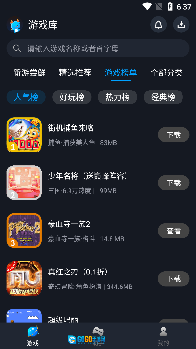 1、游戏排行榜:逐鹿助戏盒子设有游戏排行榜,用户能够借此查看最热门的游戏以及玩家情况,知悉游戏社区的热度。