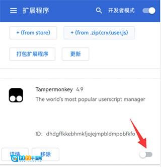 7、文件打开后,点击右下角的开关将其开启,这样就能安装油猴插件了。