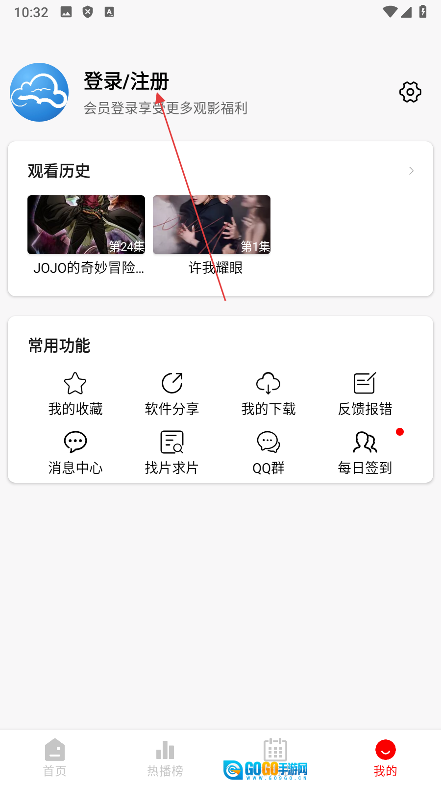2. 在个人中心界面,点击【登录/注册】选项,即可进入设置页面。