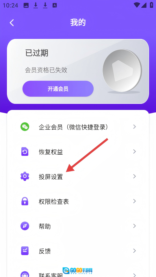 3、于【我的】页面,点击【投屏设置】,进而进入设置页面。