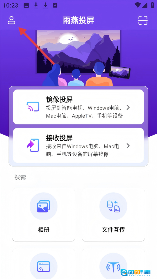 2. 打开软件后,点击软件左上角的用户图标,即可进入个人页面。