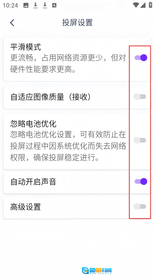 4、在「投屏设置」页面能够对各项功能的开关进行设置。
