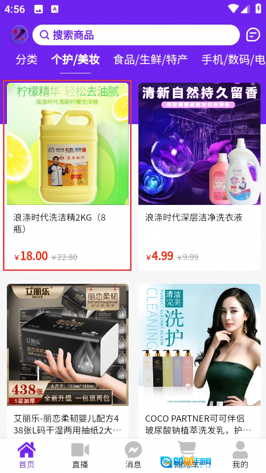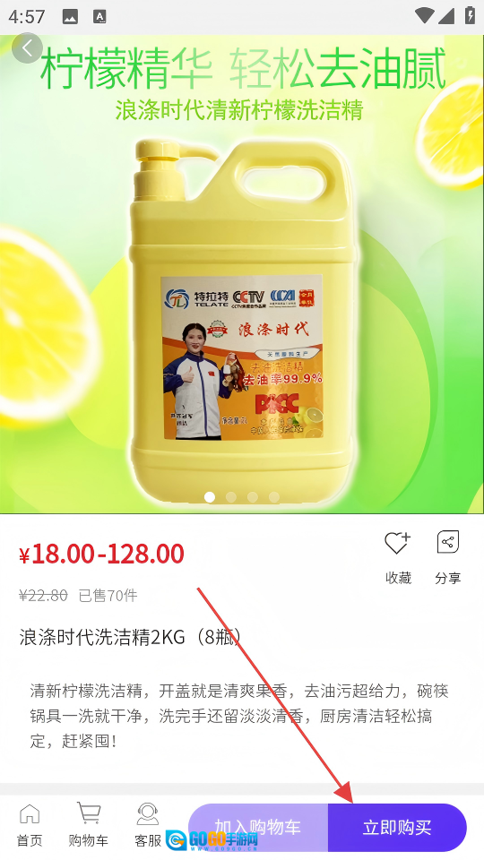 1. 来到购物首页,寻得【浪涤时代洗洁精2KG】这款商品,接着点击进入该商品的详情页面。