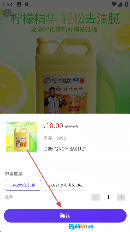 3、于规格选择页面,挑选规格后点击【确认】按钮,随即进入确认订单页面。