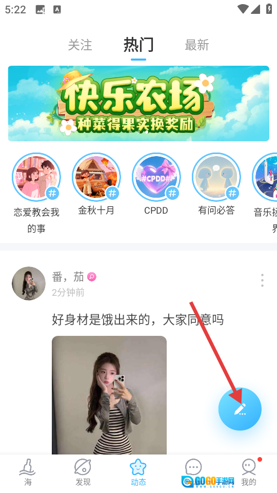 3、于【动态】页面里,轻点右下角的编辑图标,即可进入发布动态页面。