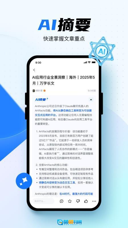 软件配备了AI摘要工具,能够助力用户提炼文章的关键内容,实现重点内容的实时摘要。