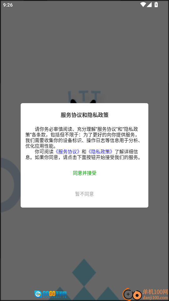 1. 打开软件,阅读“服务协议和隐私政策”后,点击“同意并接受”,进而进入。