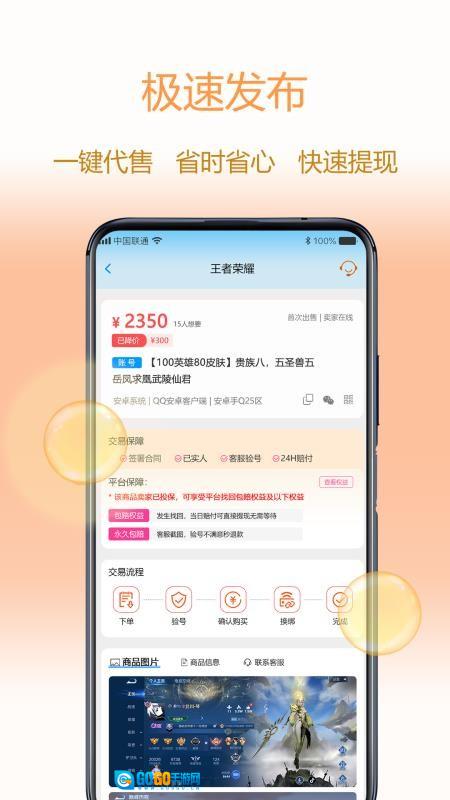 这是一款一站式专业游戏交易服务软件,平台上汇聚海量高品质游戏账号资源,用户能随心挑选并购买心仪的游戏账号,让在线购买各类游戏账号变得更为轻松便捷。不仅如此,用户还可随时在此快速发布闲置游戏账号,借助平台代售,轻松快速地将各类游戏账号变现,增加收入来源,且能随时提现使用。