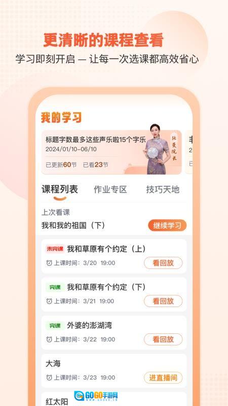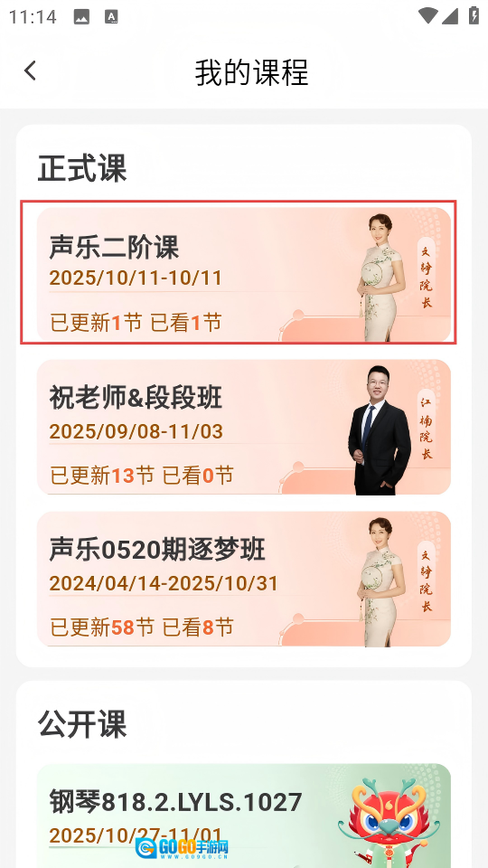 3、于我的课程页面,挑选【声乐二阶课】,进而进入课程列表页面。