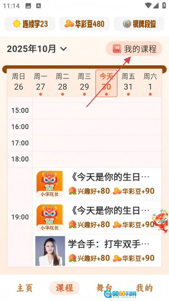 2. 在课程界面,点击【我的课程】按键,进入我的课程界面。