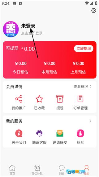 1. 开启亿优惠,点击页面右下角“我的”,就能进入个人中心页面。