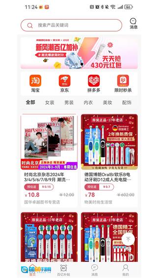 与淘宝、天猫、京东、拼多多等各大主流电商平台展开联动,全面整合各类商品资源。商品范围广泛,包含生活百货、数码家电、美妆护肤等诸多品类。用户无需在多个平台间来回切换,就能轻松浏览海量优质商品,拥有充足的选择空间,且商品品类极为齐全。