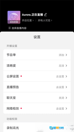 4. 接着在设置栏目里,能够预先完成节目单、清晰度、公屏等直播间相关设置。