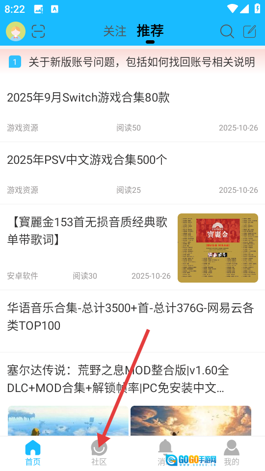 1. 于首页轻点【社区】,随即进入社区界面。
