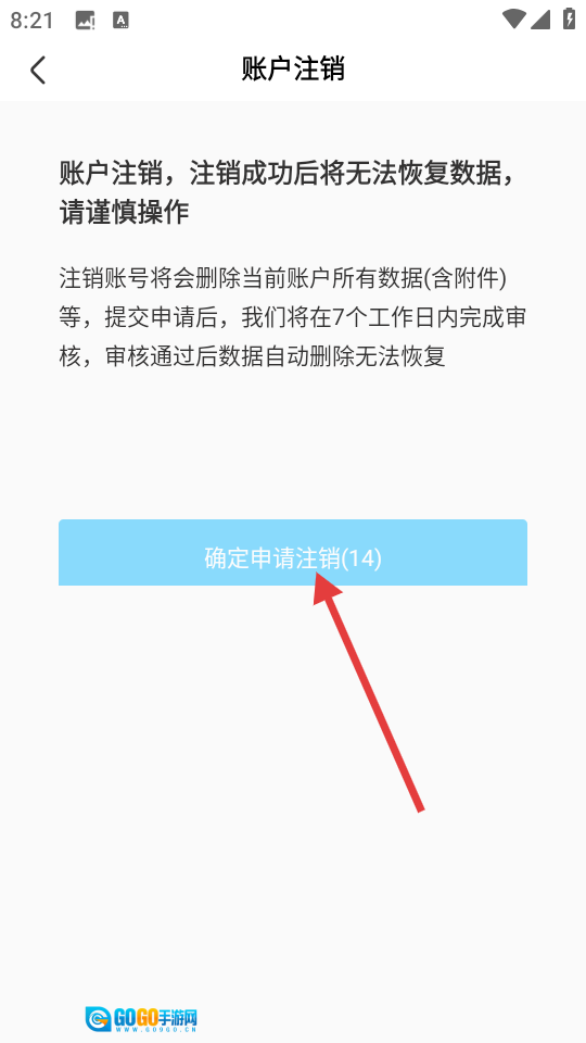 4、在账户注销说明页面,点击【确定申请注销】按钮,提交账号注销申请,随后等待审核完成就行。