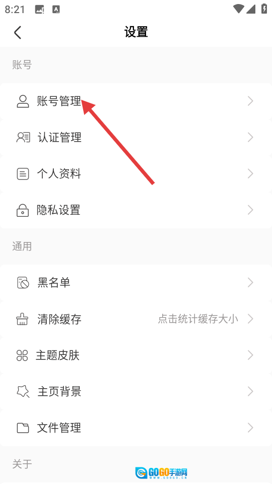2. 在设置页面当中,点击【账号管理】选项,从而进入到账号管理界面。