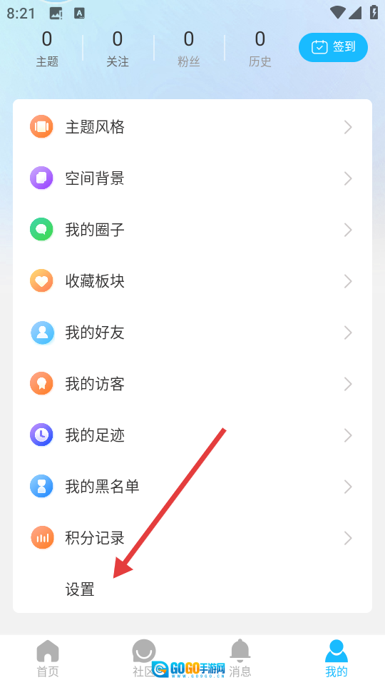 1. 于“我的”页面,点击【设置】选项,从而进入设置界面。
