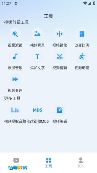 2. 提供滤镜、背景、镜像、比例、音乐、文字、动画、变速等基础剪辑工具,还具备视频提取音频、修改MD5等进阶功能。