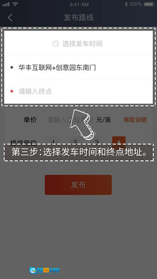 3、挑选发车时间并确定终点地址。
