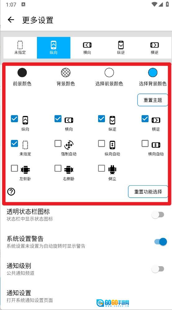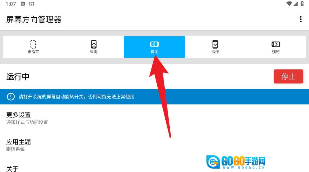 3、运行过程中,能够选择横向、纵向等模式,实现对屏幕方向的自由控制。
