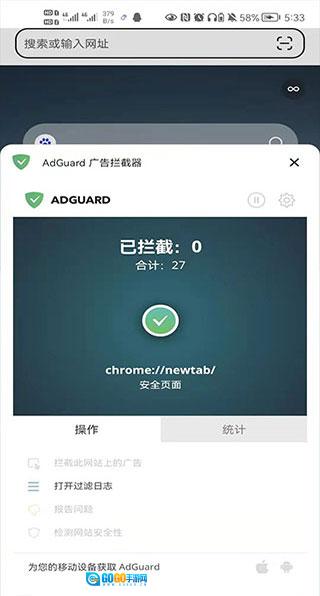 紧接着开启ADGUARD广告拦截器,就能轻松屏蔽网页上的广告。