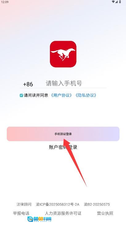 2. 在登录页面输入手机号码,勾选同意相关协议,接着点击“手机验证登录”来继续注册账号。