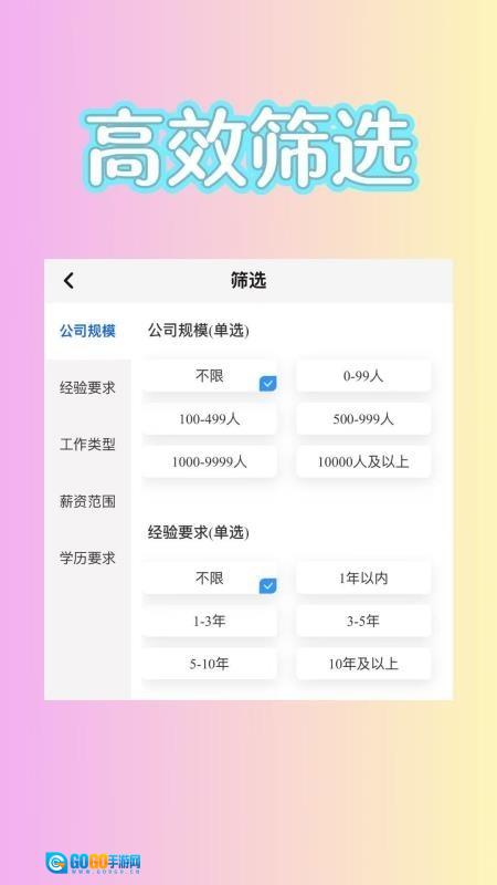 1、职位筛选:从行业领域、薪酬范围、工作地点等多个维度进行精确筛选,能够迅速锁定你心仪的岗位。