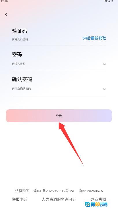 3、填入短信验证码,设定登录密码并再次输入,完成注册后点击登录,即可进入应用。